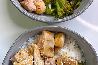 A healthy & easy weeknight dinner, this marinated chicken is sweet and savory, and perfectly paired with sautéed broccoli and warm coconut Jasmine rice.